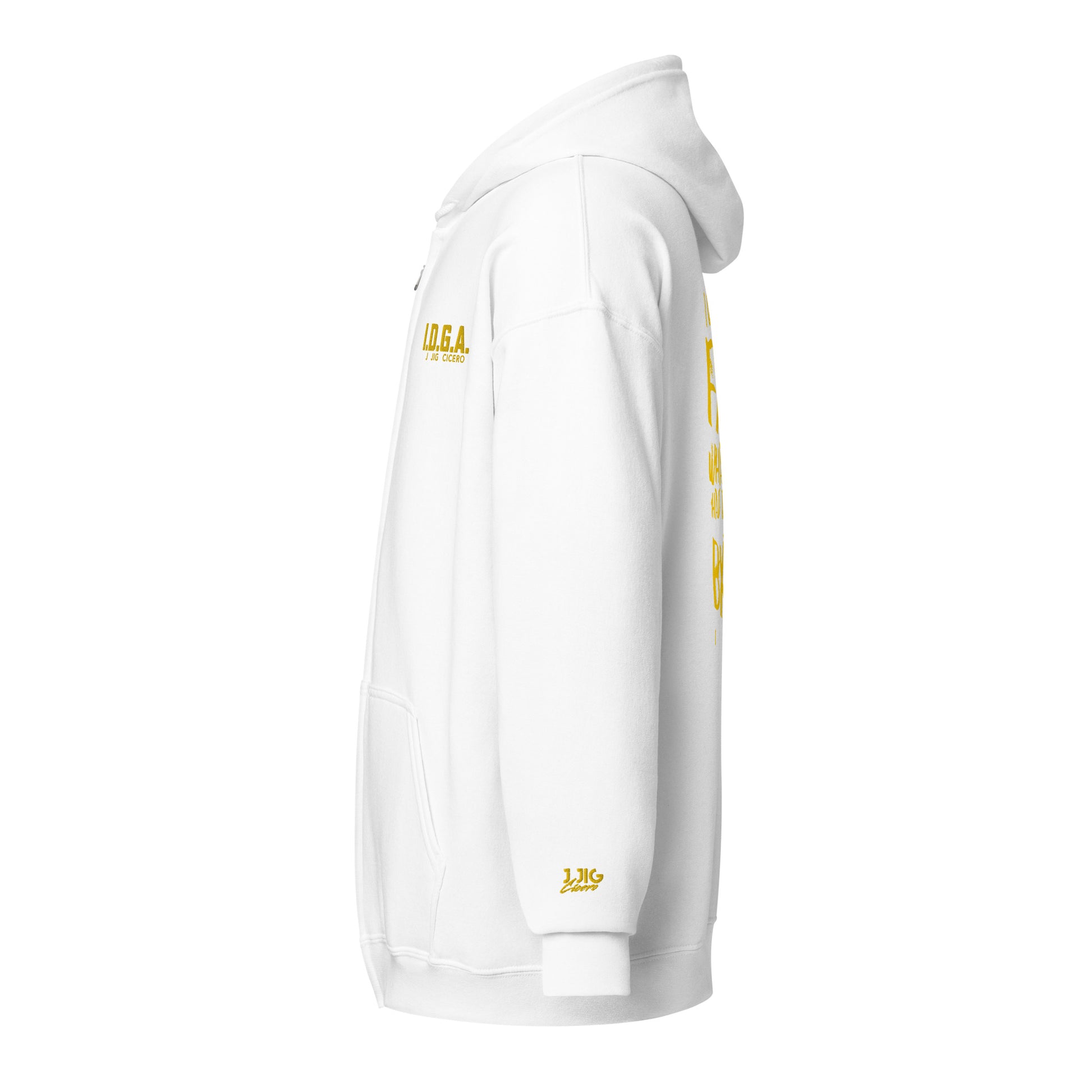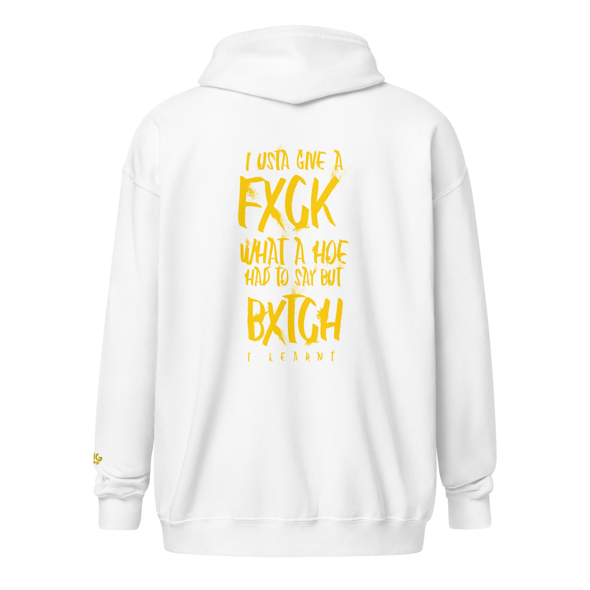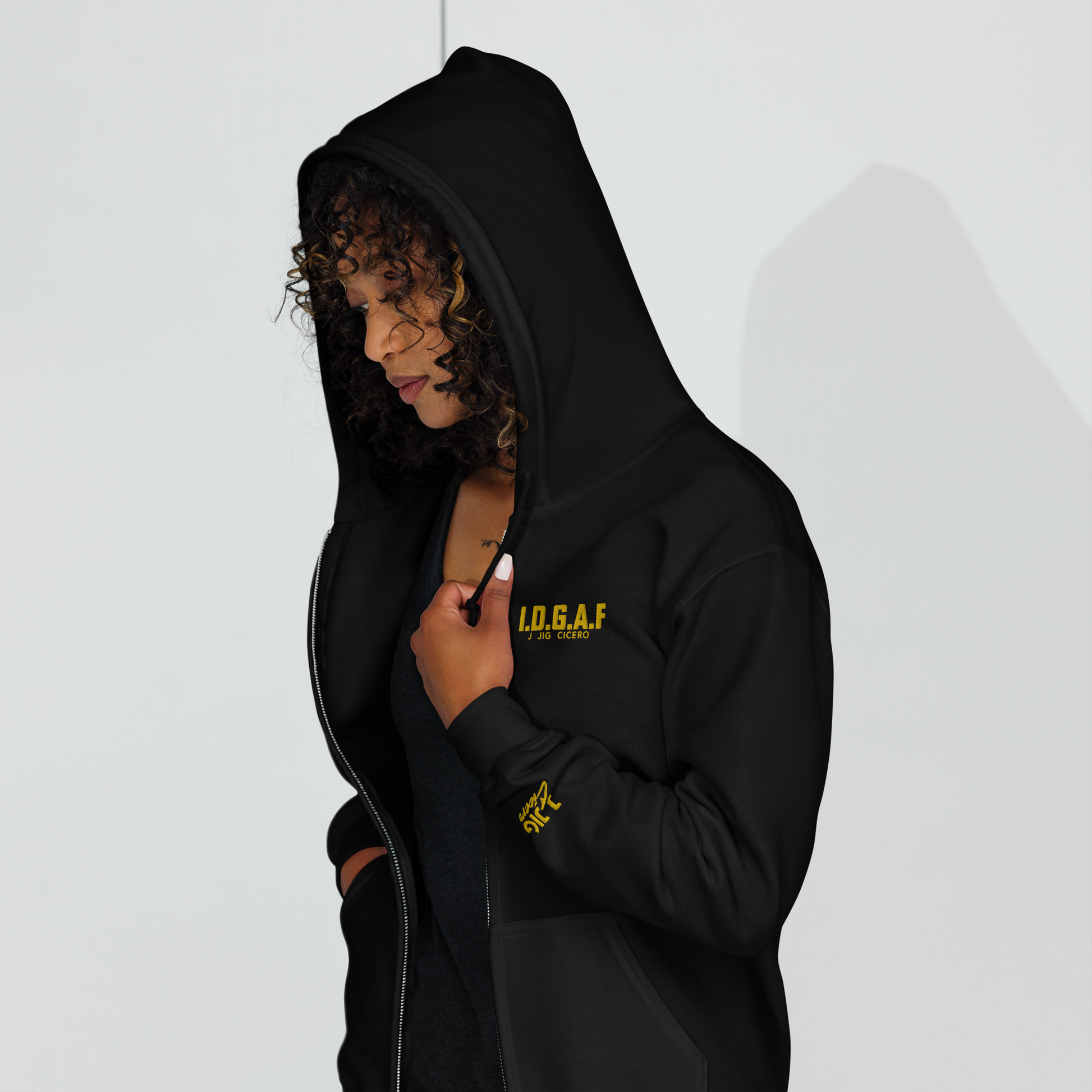 Level up your hoodie game with our IDGAF lyric hoodie. It's all about style, comfort, and attitude. Made from soft fleece inside and out, this hoodie features a sturdy metal zipper, convenient front pockets, and a hood with color-matched drawstrings. Designed with style and comfort in mind, this hoodie will quickly become your new favorite.